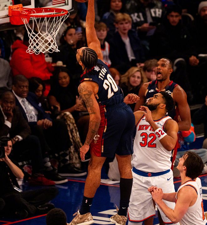这一个比赛日,骑士迎来了NBA年终大战的考验,奔赴纽约麦迪逊广场花园挑战尼克斯,比赛开打之后,反客为主的骑士,在后场双枪米切尔和加兰的率领下,一度建立起了17分的领先优势,可惜没有顶住对手的反扑,最终124-126饮恨,被尼克斯赛季双杀。